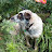 A gardening gal and her dog.