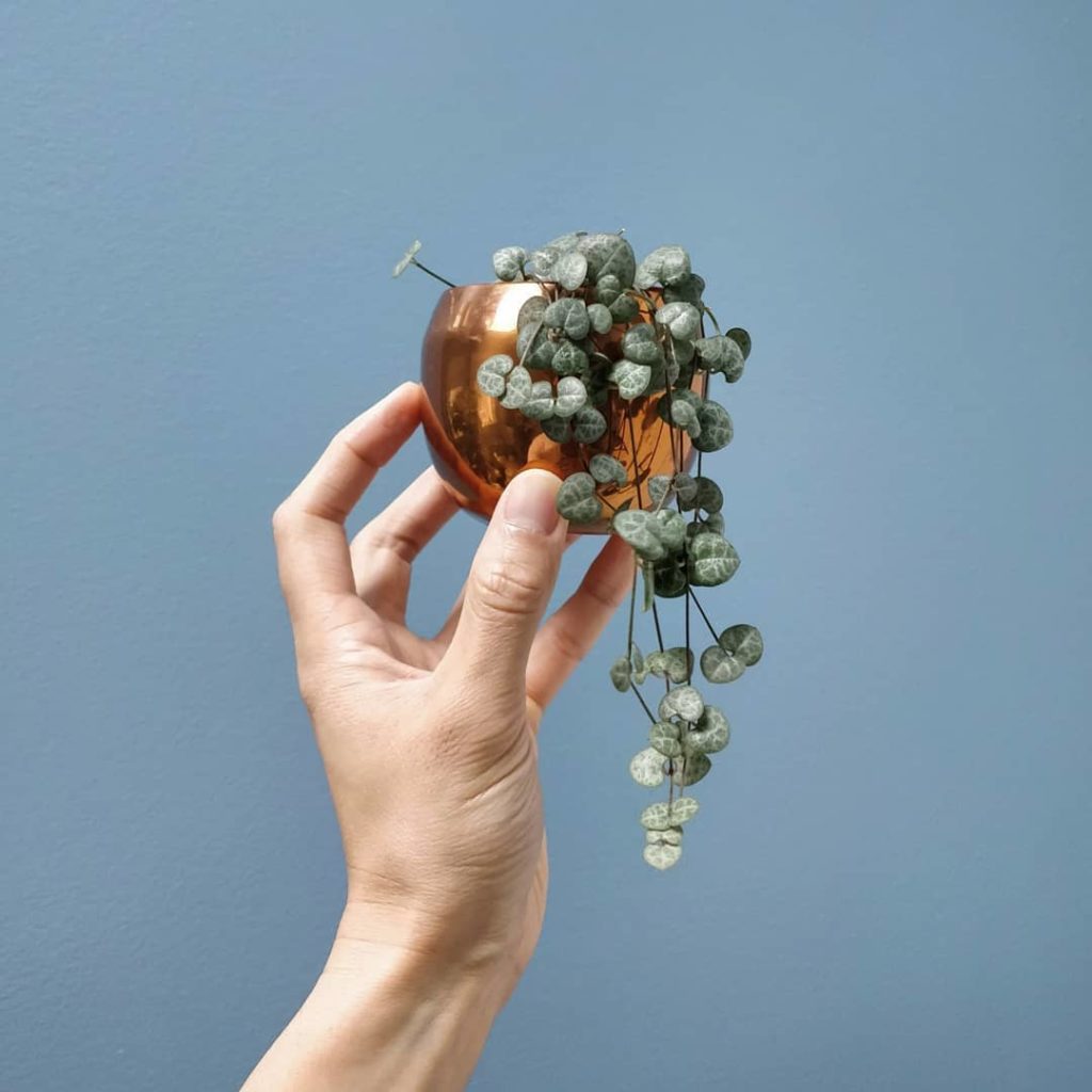 String of hearts looks about ready for another round of propagation – see my ‘Propagation’ story for a link to full instructions. Vintage copper (outer) container provided by @plantbabystudio – it fit the nursery just perfectly!