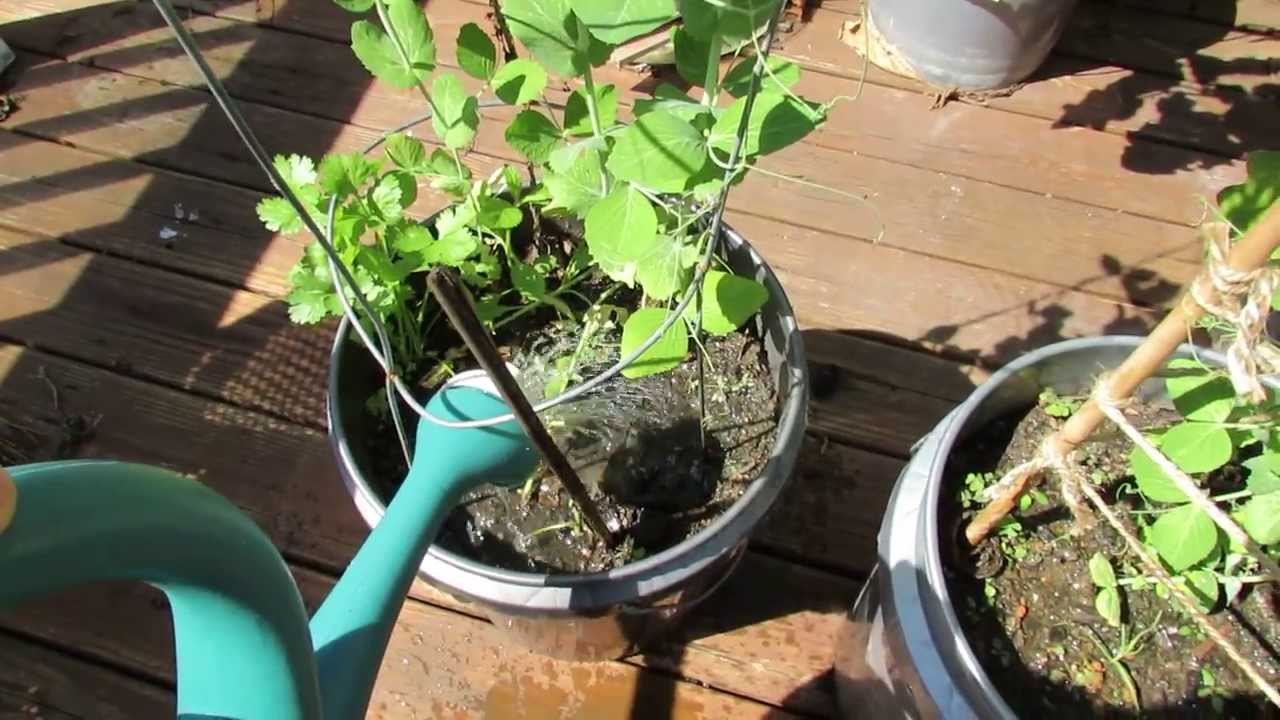 This is part three of a four video series. The peas have been growing a while. Basic tending and feeding will help them get to full production. They don’t need a lot of care.