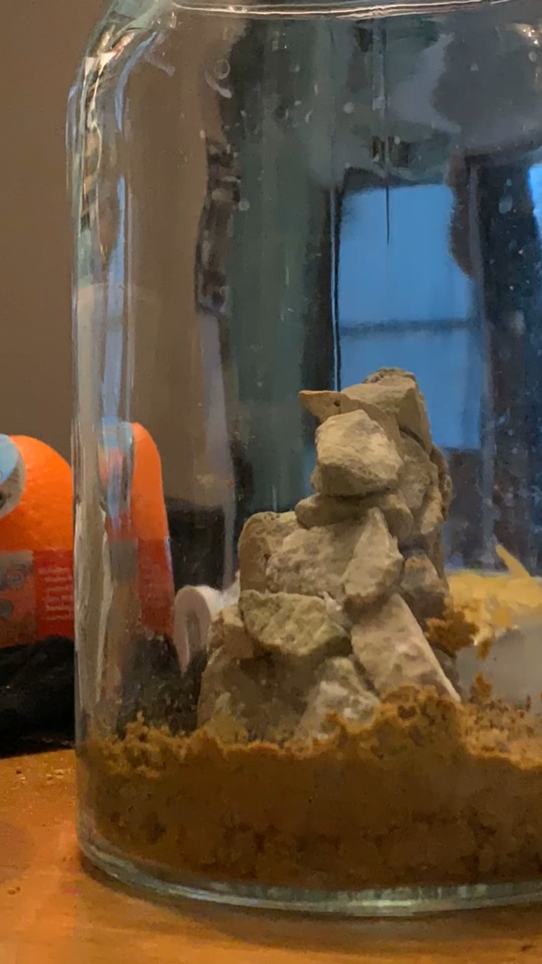 Only got the tail ends on camera but my God that hardscape took a long time to build especially because I had to build most of it while inside the jar! I’ve planted small freshwater plants in the water but I’m planning to use salt water and keep my sea monkeys inside! Not sure how much the plants will tolerate but I will update.