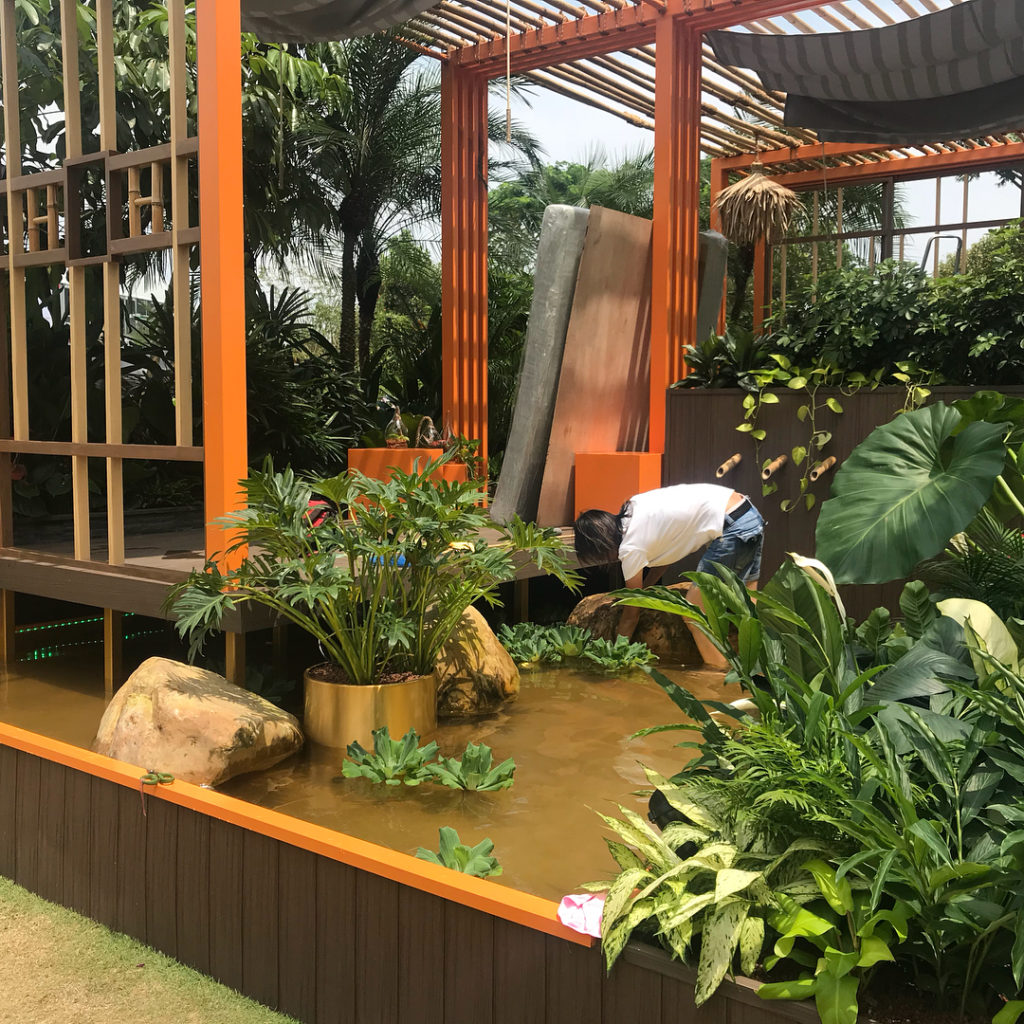@lailingl3 @wmbywmby #isshydroculture totally dedicated to this #tropicalgarden @sggardenfest polishing leaves and tying water lettuce to rocks! We’re very nearly there! #gardendesign #showgarden #thankyou