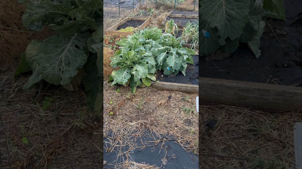 Check it out it’s late December here in zone 5B and you can see my collard greens are still doing great in fact I’m going to harvest some to eat them it’s been a very very mild winter usually they’d be already dead by now you can see the leaks are doing good too I’m