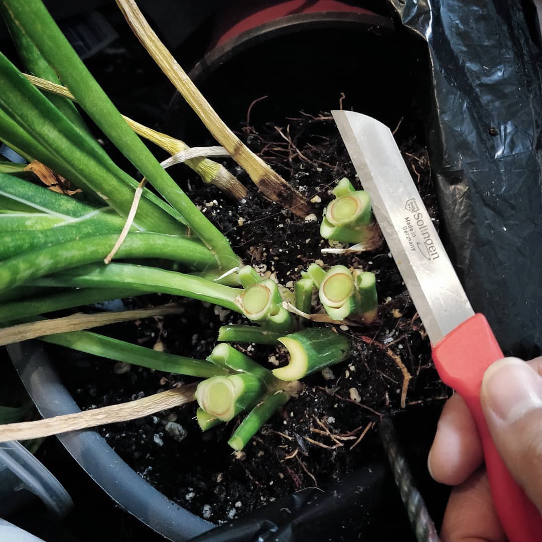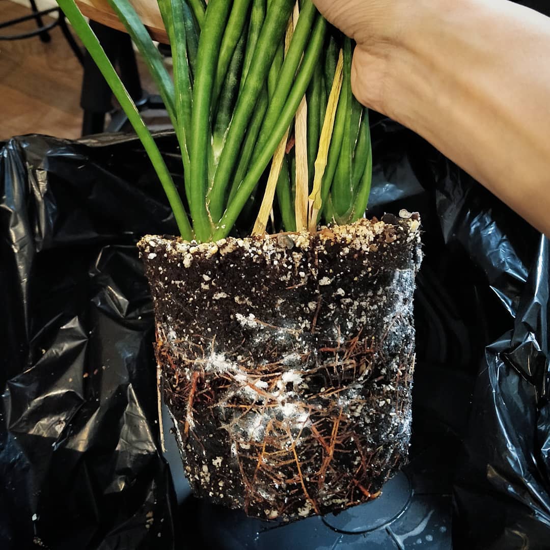 So sad! 2️⃣ I discovered root mealy bugs on one of my favorite snake plants. 3️⃣4️⃣ Without much space for messy soil work, I decided to cut off the healthy foliage and get rid of the roots entirely. 5️⃣ The plant in 2014.
