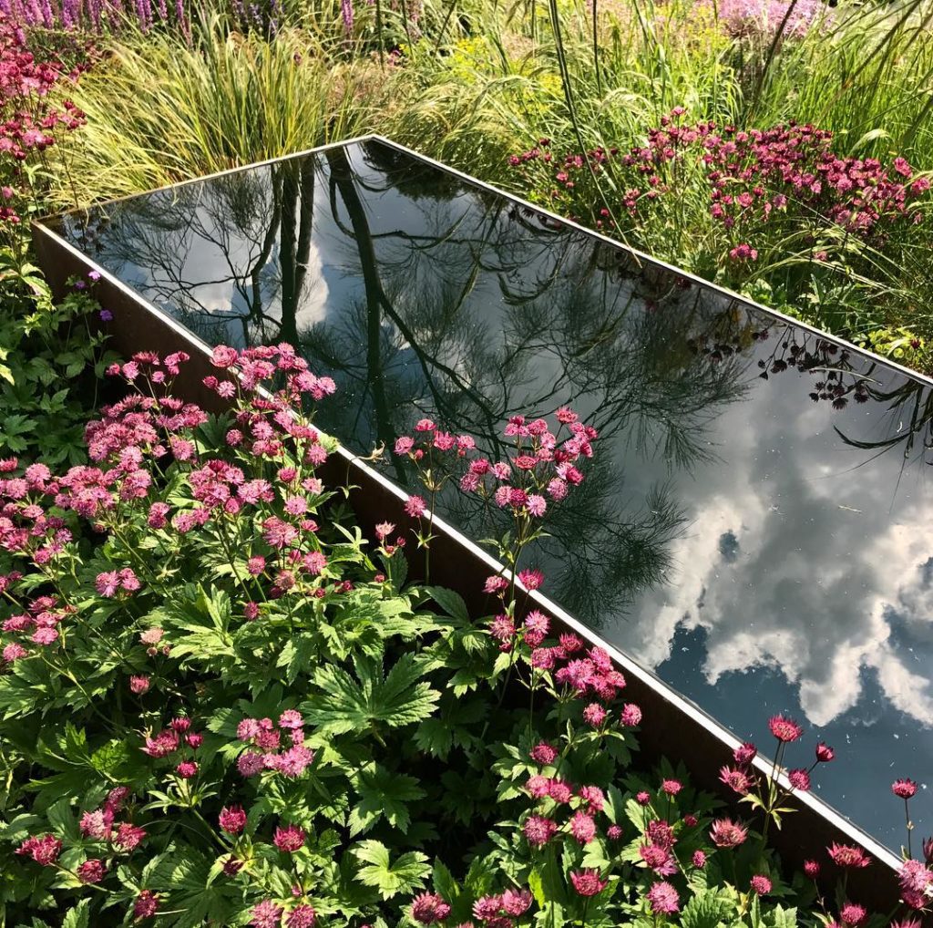 The courtyard, could it be anymore beautiful? #tomstuartsmith #gardendesigngod #astrantia #reflections #corten #garden #design
