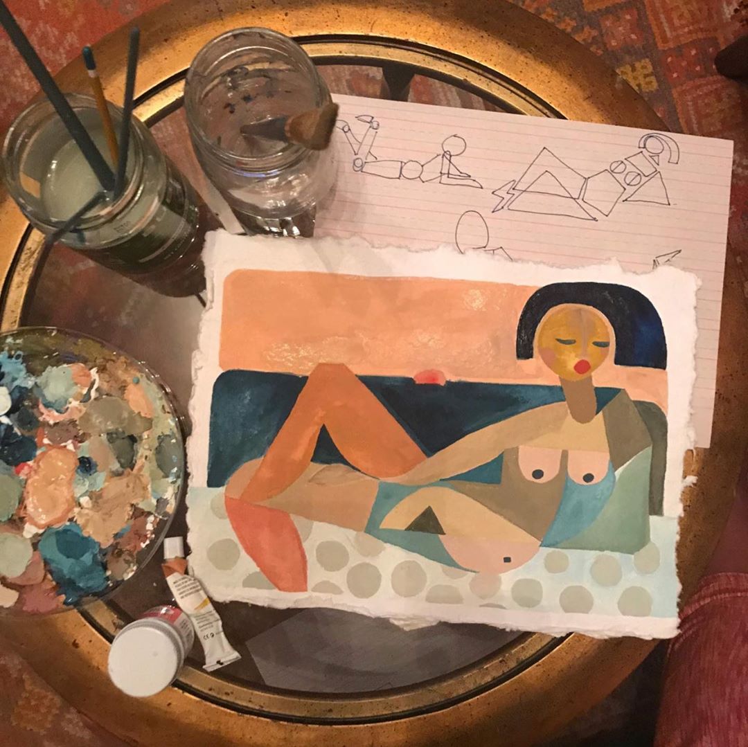 At the heart of everything we do here at #jungalow is enjoying the process. Our designs usually begin with a pencil and paper, or a watercolor painting and then our art leaps off the page and turns into quilts, vases, wallpaper, rugs and pillows. If ever you’re feeling like you’re in a creative rut, try getting off the screens and going old school: pastels, pencils, watercolors. Just get out of your head and let your hands guide you! @justinablakeney #process #behindthedesign