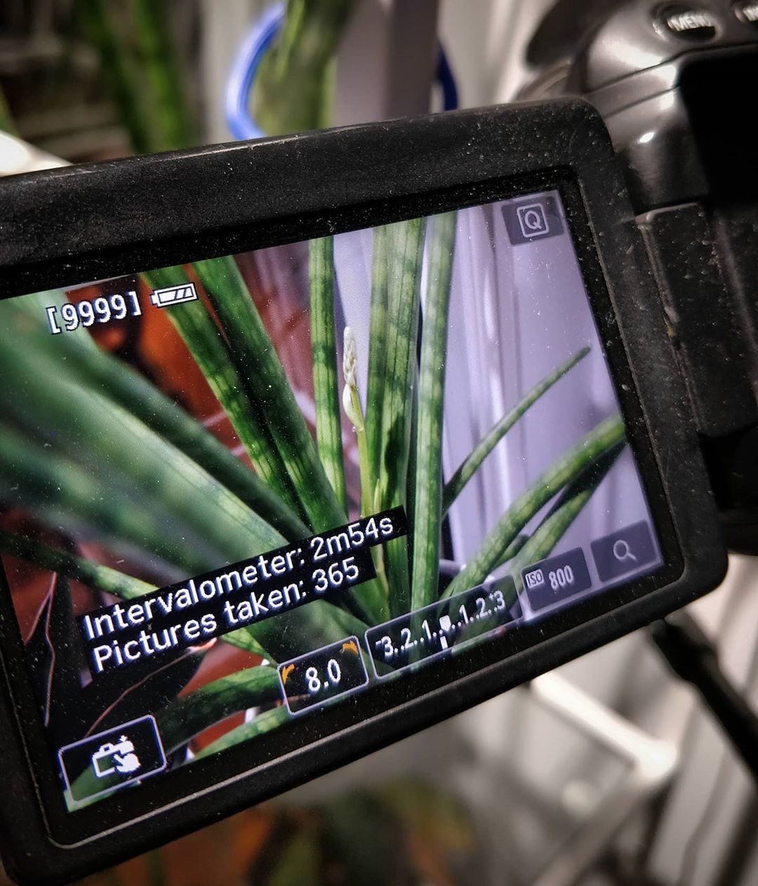 Snake plant flower time lapse in progress. I’m doing shots every 3 minutes, expecting this to run for a few weeks.
