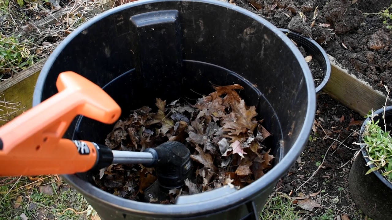 Check below for a coupon for the shelving system I use. A trashcan and a weed-eater will process your leaves into finely chopped pieces. The finer the leaves, the more surface area, and that means they soil life will more quickly break them down for you garden, come spring. I put my beds to sleep like this and come spring I just turn the soil and plant.