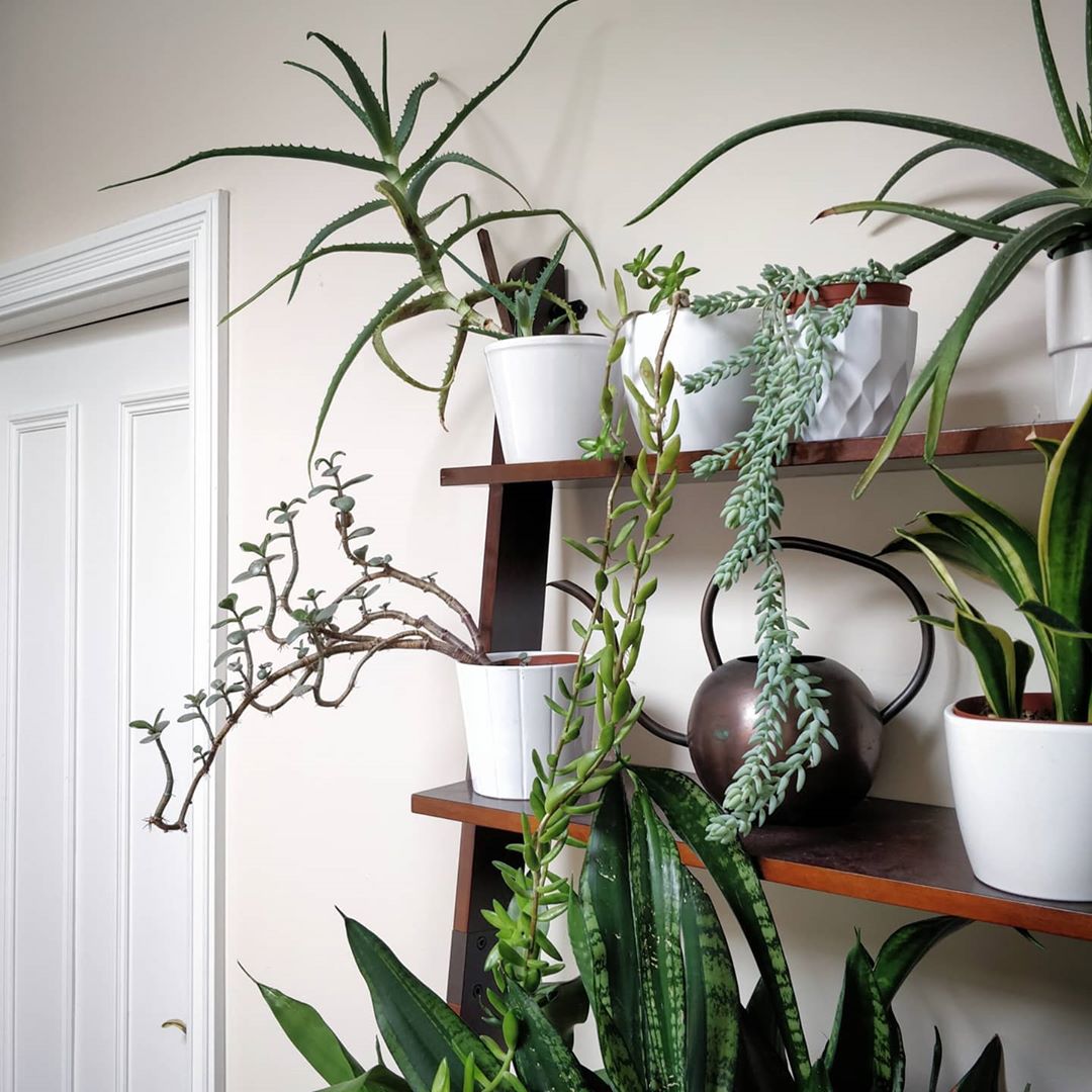 #houseplantjournal #houseplants #plants #urbanjunglebloggers #houseplantclub #plantdad #succulents #burrostail #jadeplant #aloe #snakeplant #sansevieria #plantshelf #plantshelfie #trailingplants #trailingplantsthursday #hpjbook #thenewplantparent #chasinglight