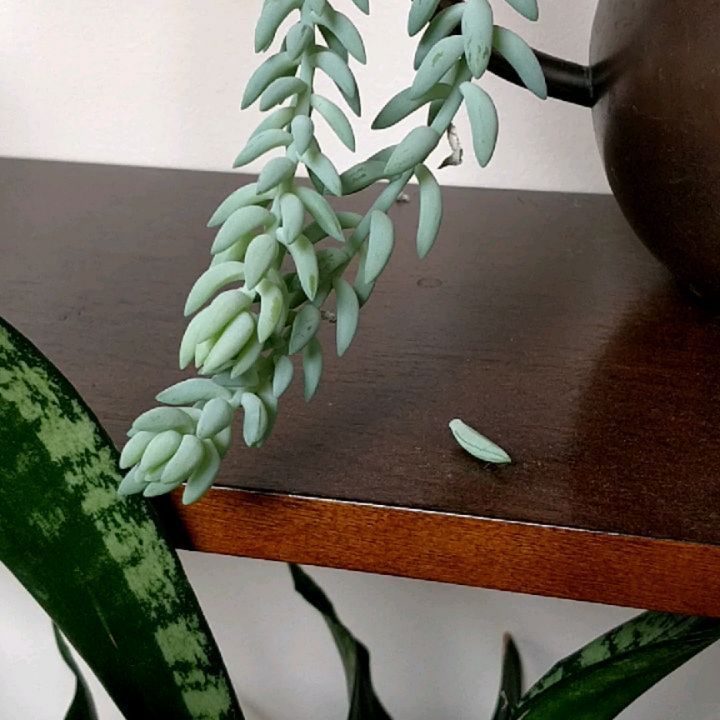 2️⃣ Each time I notice a dropped leaf from my Burro’s Tail, I *calmly* put it back into the pot.