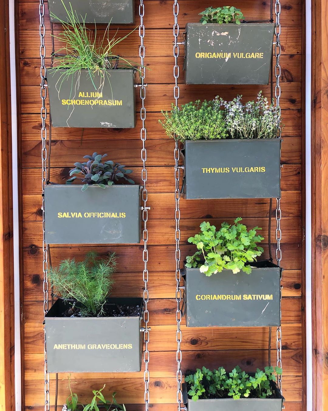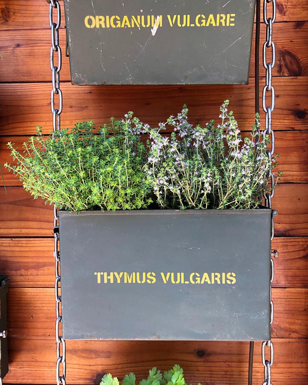 Herbs not ammo! We love repurposing ammo cans into narrow containers great for vertical gardening. Check out our story highlight to see how we refreshed the ammo cans and hung them along the chains! #herbgarden #diy #ammocangarden