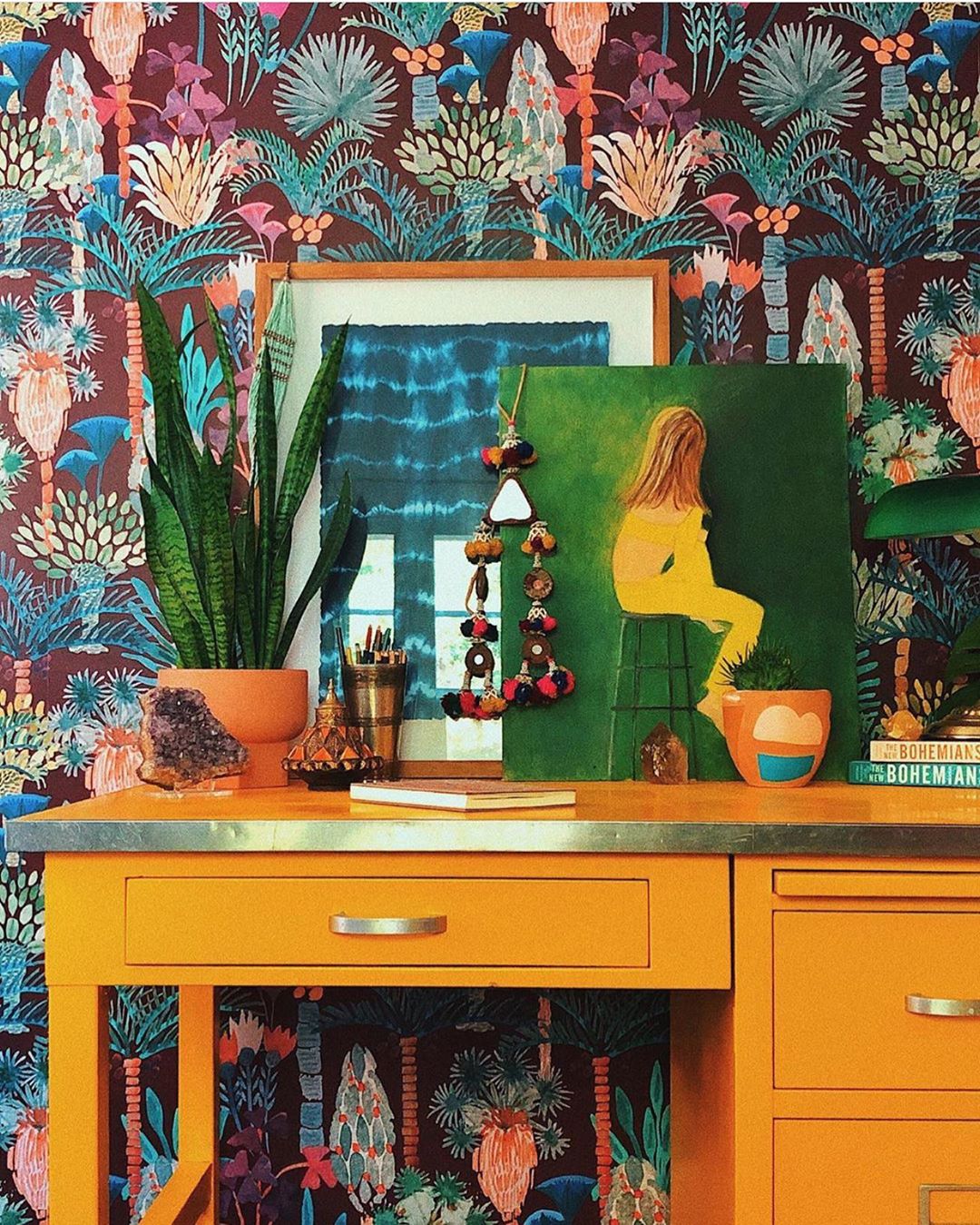 Have you been zhuzhing your WFH situation? Go ahead and paint that desk, hang wallpaper, add plants and art like @pipermenell from #teamjungalow did. Take advantage of the fact that there’s no one to tell you that your cubicle is too wild 😜🌞🌿 #jungalow