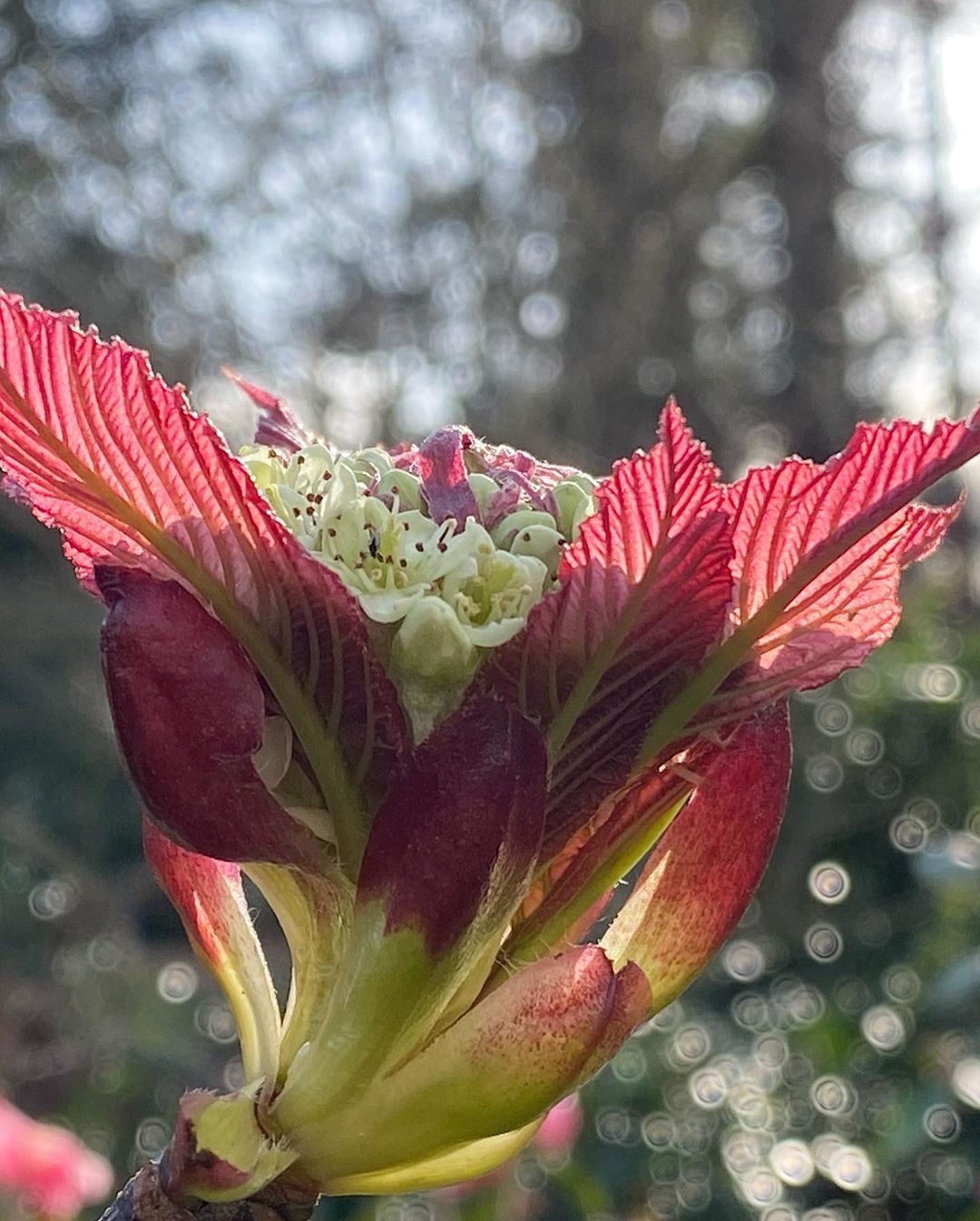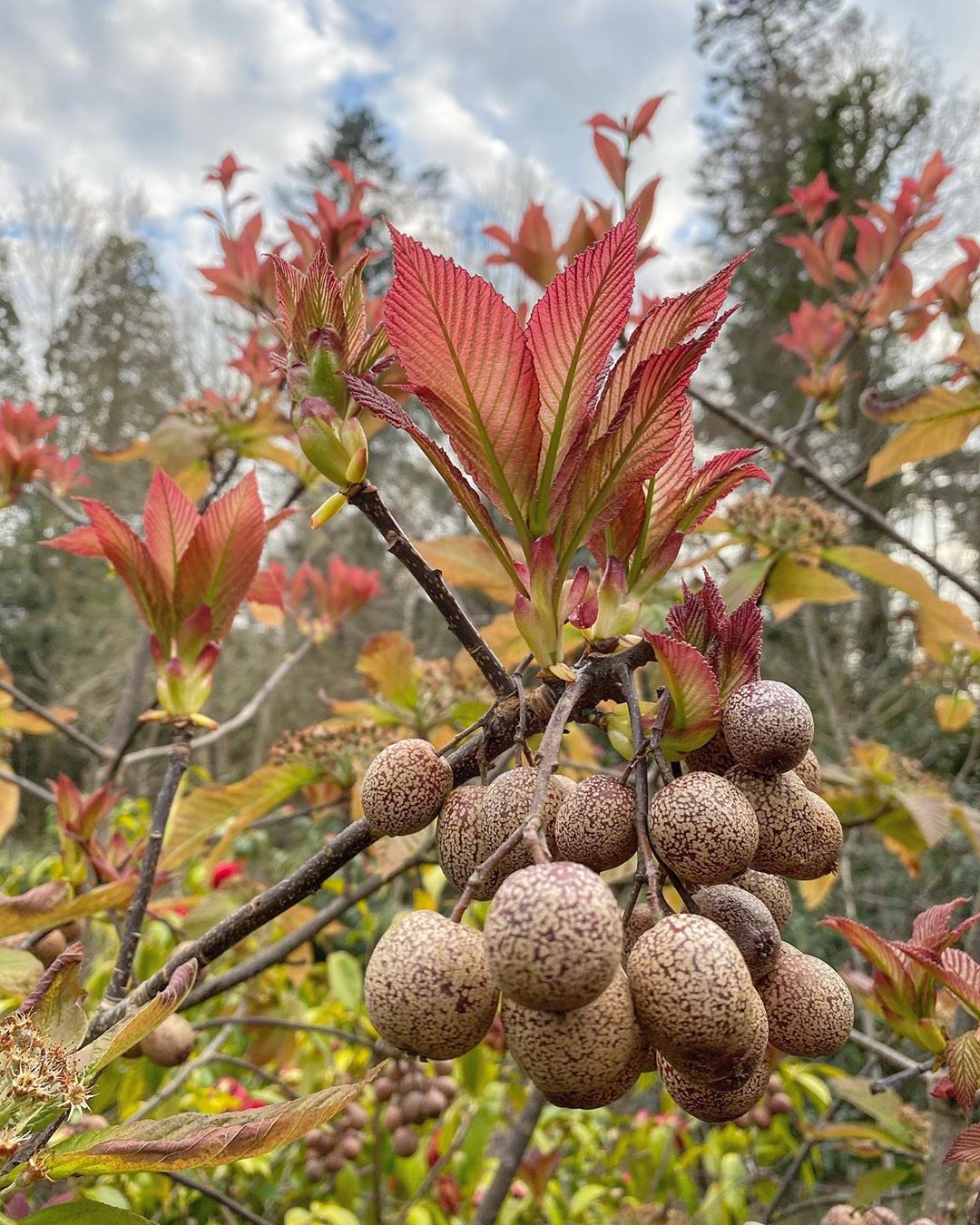 Continuing to look at #epic #new #leaves : Sorbus megalocarpa var megalocarpa : a small #tree / large shrub. You can see in the second image that this year, it is still holding on to its autumn fruits as the #spring leaves emerge, followed closely by the #flowers : a #striking #plant