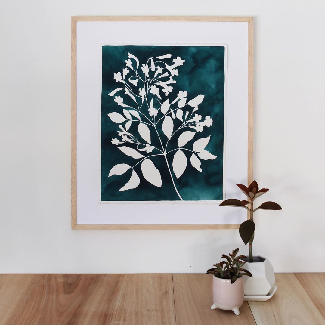 The Australian Wonga Wonga vine sits on a deeply saturated viridian wash. The famous bells and pointed pods emerge as Spring brings warmer weather. We spotted this beauty on a trip to NZ. The plants out there are incredible!