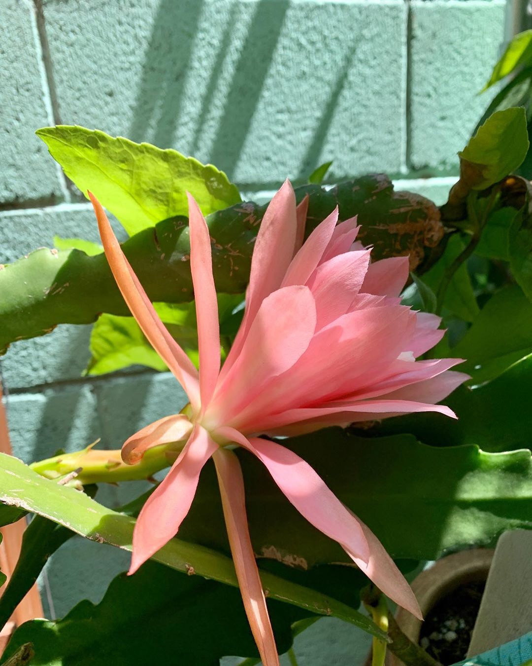 Part of the drama of #epiphyllum season is trying ~not~ to knock the plant, which can send a bud falling 😫 But the tip-toeing pays off — blooms the size of a lunch plate, opening at night 💗 #breakfasttheater #orchidcactus #succulove #thehorticult