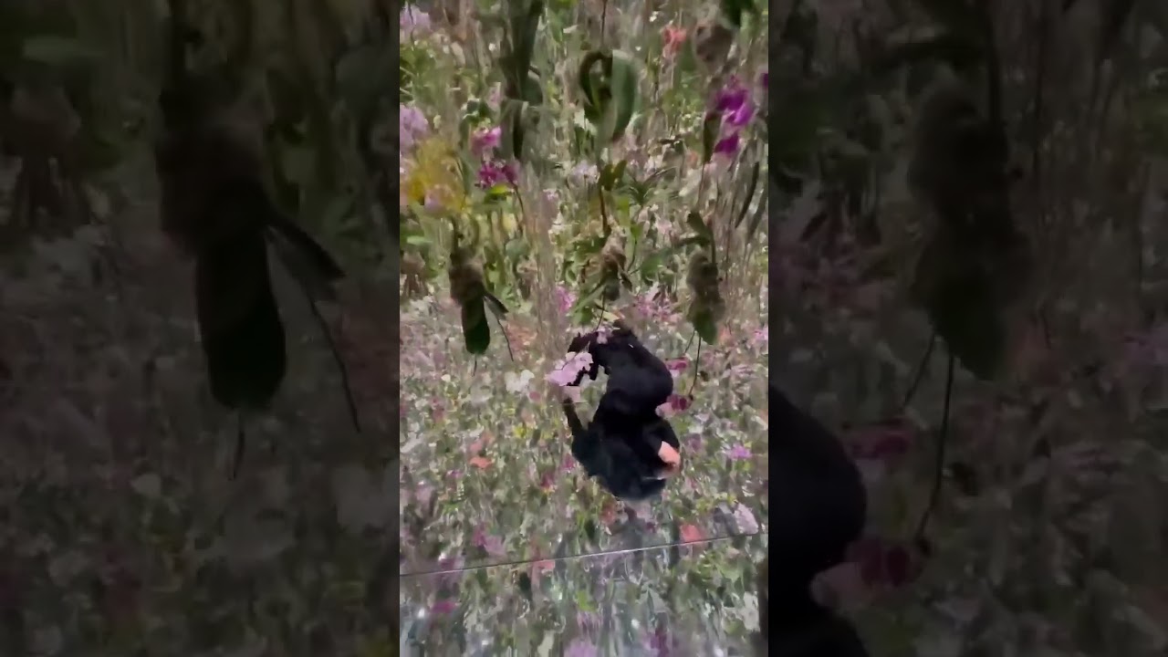 Their description is: This floating flower garden consists of a three-dimensional mass of flowers. The flowers in this artwork are orchids. Most orchids are able to grow without soil by absorbing water from the air. The flowers in this artwork are alive, growing, and blooming with each passing day. It could be said that they are growing in mid-air.