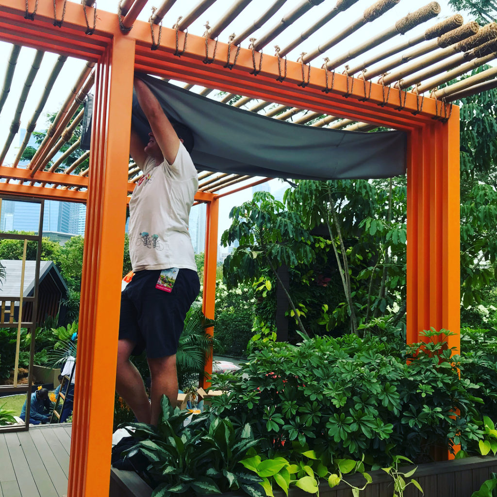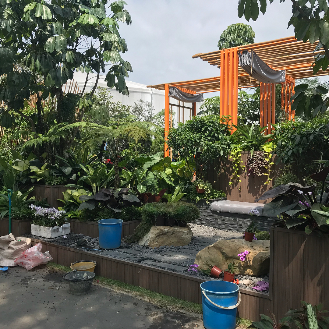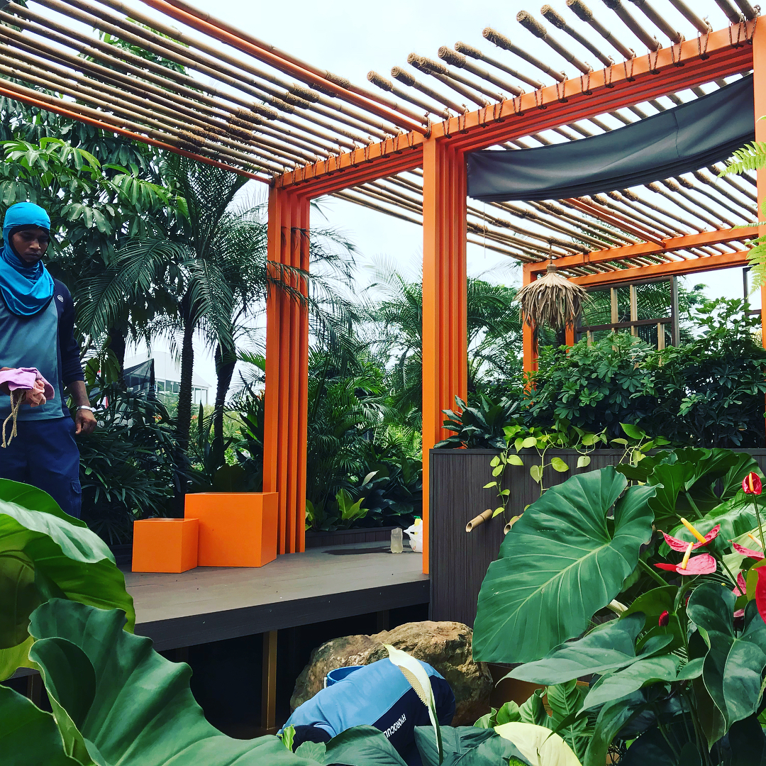 There is still a lot of finishing to do but to get this far in the vicious heat and dust BIG THANKS must go out to @knchappers & @colinkgg for coming with as well as @sggardenfest for having us and to #isshydroculture, especially @wmbywmby & @lailingl3 & their great team for their humour and support as well as organising us!