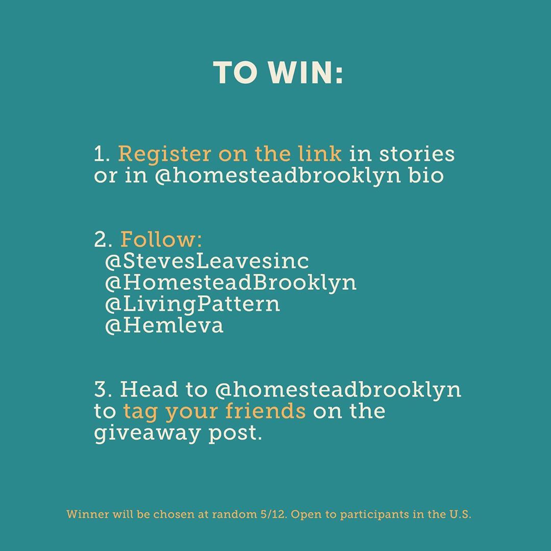 1. Register at the link to giveaway in @homesteadbrooklyn bio or in swipe up in Stories.⁣⁣⁣