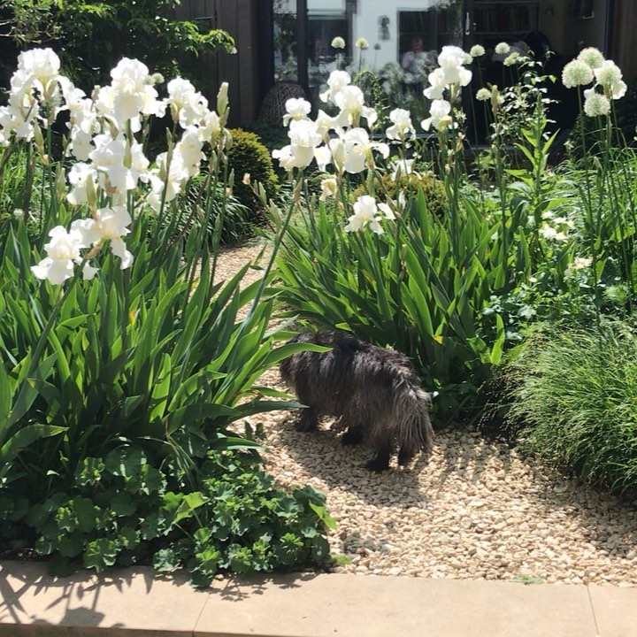 #gardendesign #gardens #garden #jardin #giardino #gardendesigner #citygarden #white #green #cairnterrier #simplepleasrures #rosegarden #whitegarden #irises #smallgarden #london #lockdown #lockdownlife