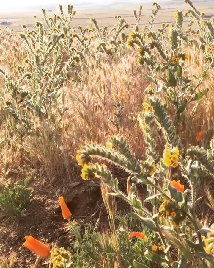 Took an early AM hike to see the famed California poppies north of LA in their last month ⏰🚗🏞 The main attraction was still snoozing while the fiddlenecks played in the morning breeze #superbloom #antelopevalleypoppyreserve #fiddlenecks #thehorticult