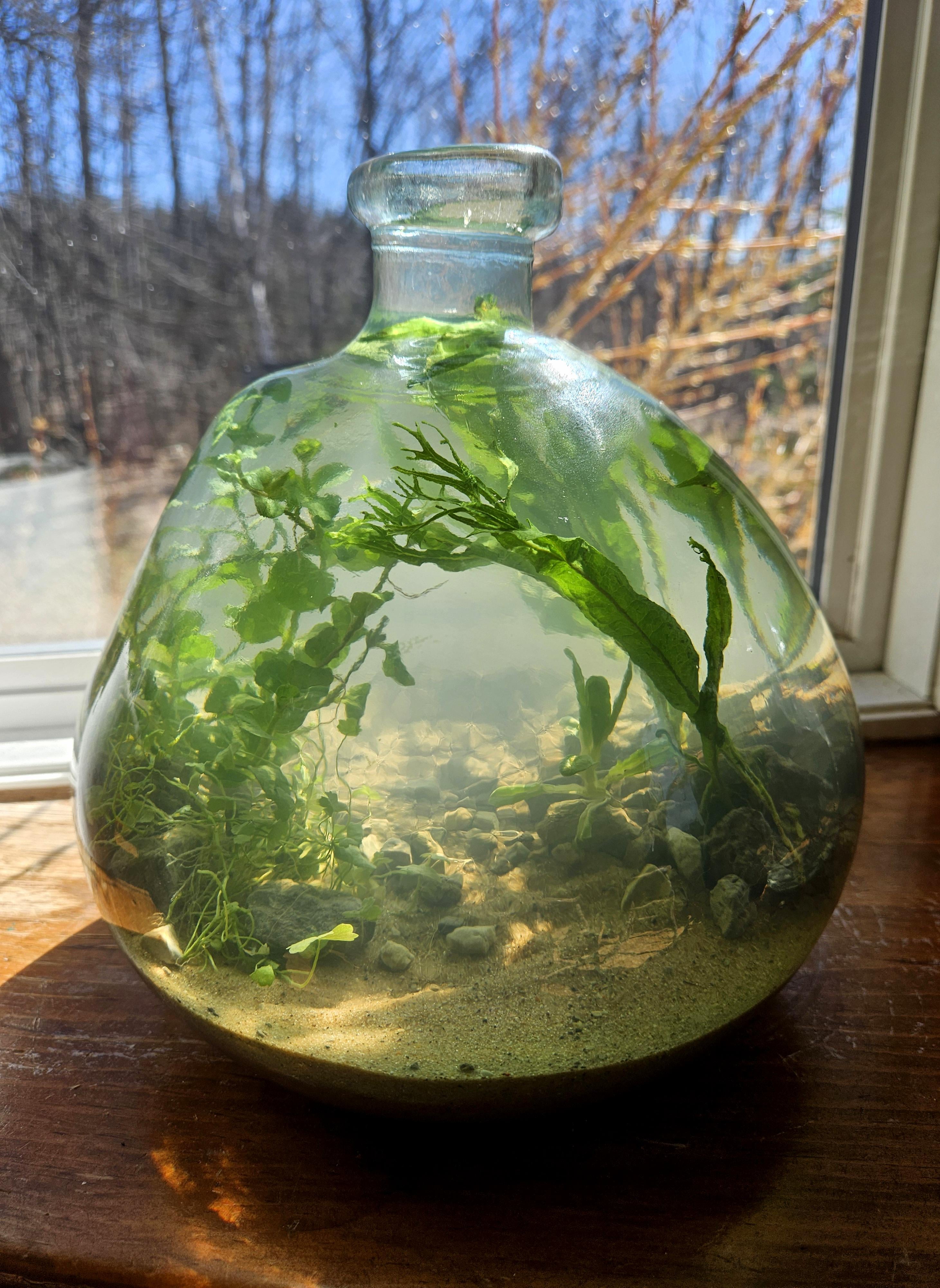 Water is still a little cloudy from when I first put it together, but I'm hoping it'll settle over time by softmossboy Closed EcosystemsEcospheresminiatureself sustainingself-contained 1 Comment Actias_Loonie 2 years ago Love the bottle. The plants will filter the water a lot. Good luck! I’m on my third jar attempt. Write A CommentYou must be logged in to post a comment.