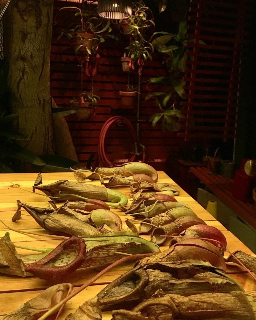 Cut off some cups and even dissected a few! Check out our story to see what we found inside 🐜 🐛🕷 #nepenthes #tropicalpitcherplant #monkeycups #thehorticultgarden