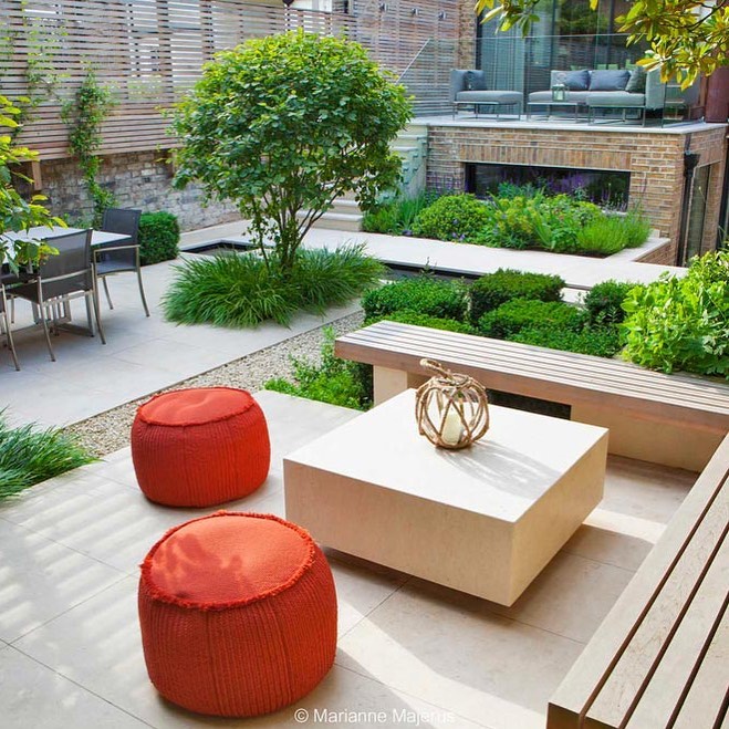 Still love this #garden I designed some years ago. It has all the elements one needs in an urban #outdoorspace and I love the hit of #colour in the foreground against the calm cream limestone #paving