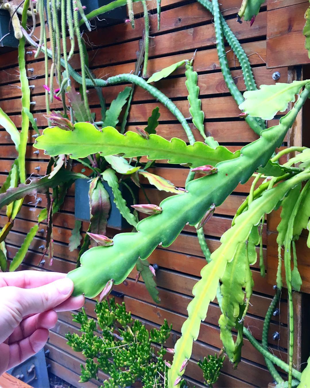 We’ve got buds ✨on the epi wall… and more than ever 😮 Each of these buds will grow 4-6 inches before opening into a spectacular flower 🌺 show that lasts a single night. Feeling the excitement start to build 🥁🥁🥁#epiwall #epiphyllum #floweringcacti #thehorticultgarden
