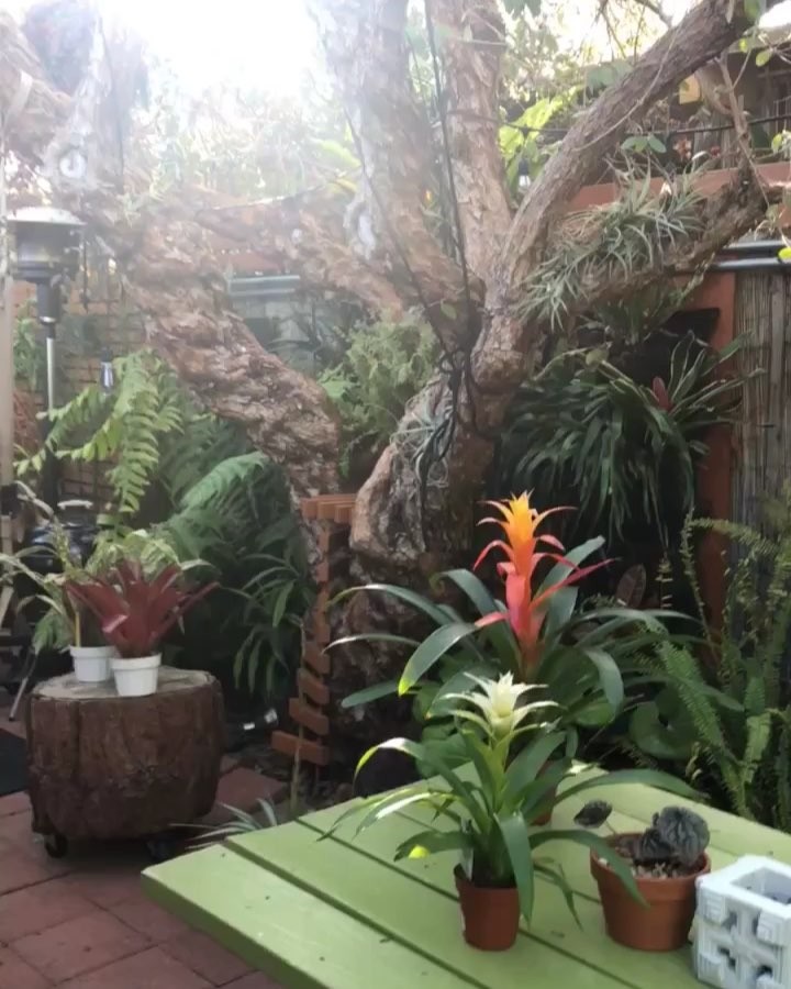 The tropical living wall behind the guava tree needed a colorful refresh — Bring in the bromeliads! 🌿❤️🧡💛🌿 They do quite well in this location receiving bright filtered light, grown in @wallygro pockets, and set up with a timed irrigation so that the soil never goes dry 💦 #bromeliaceae #bromeliads #guzmania #aechmea #bilbergia #tillandsia #livingwall #thehorticultgarden #ryanbenoitdesign