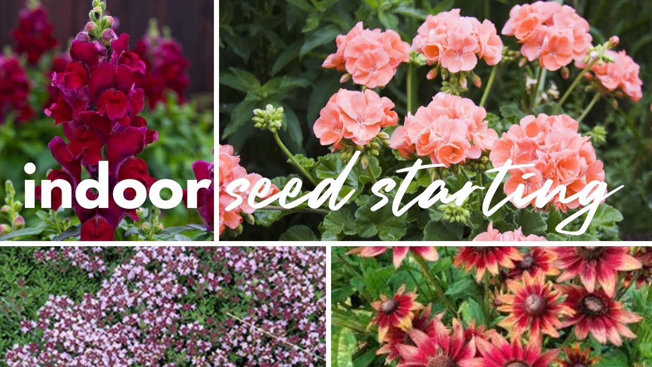 Starting flower seeds indoors: Geraniums (pelargonium), snapdragons, rudbeckia, creeping thyme, rosemary, and onions.