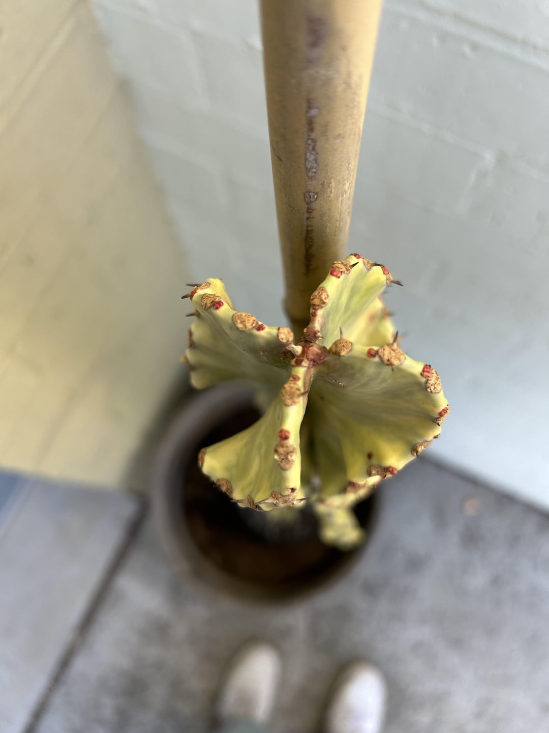 A cutting that I received a while ago and have it in soil. And notice this top part of the ammak, is it just growing or is there a problem? It has been definitely colder where I am, assuming that’s a contributor by CcBrown00 EuphorbiaceaeSucculent Varieties Write A CommentYou must be logged in to post a comment.