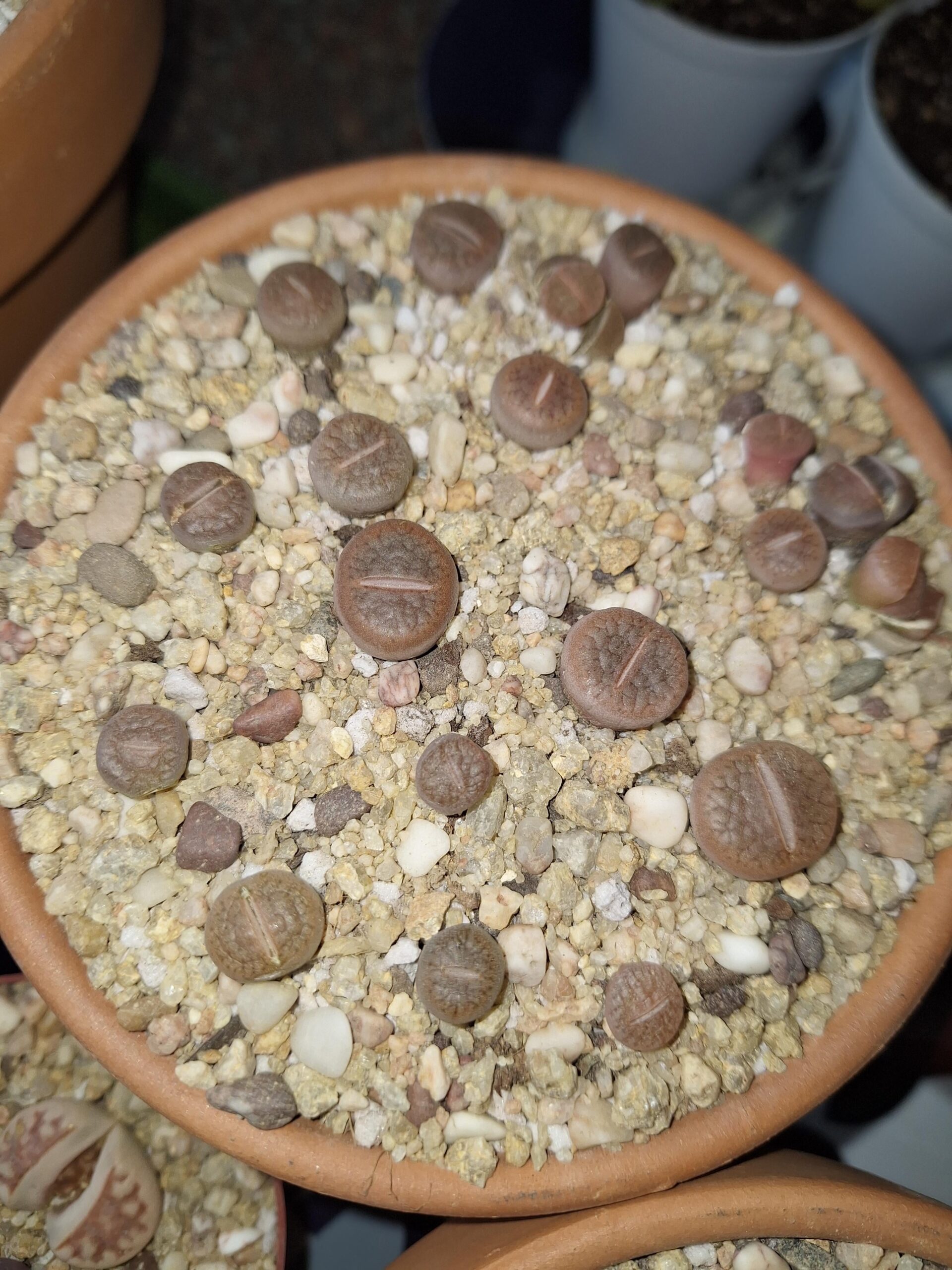 I’m quite sure these lithops are splitting,they are very wrinkly though(especially the smaller lithops on the left).Do they need water or should I just leave them alone?