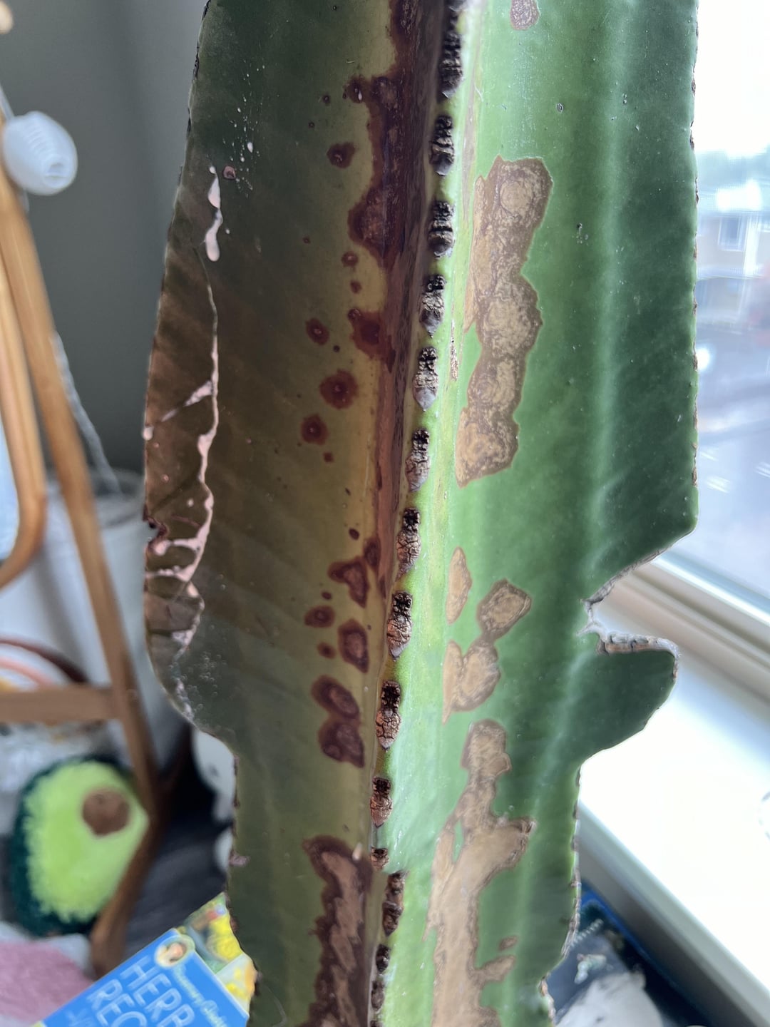 Note- I don’t think it is root rot on her sides, just sun burn from when I thought she’d enjoy being on the balcony. I was wrong. She also came with the darker spots, which haven’t changed since I’ve owned her.