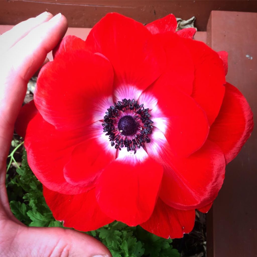 @thehorticult: Our giant new Anemone ‘Premier Scarlet’ is making Ryan’s hand look small 🤚 #anem…