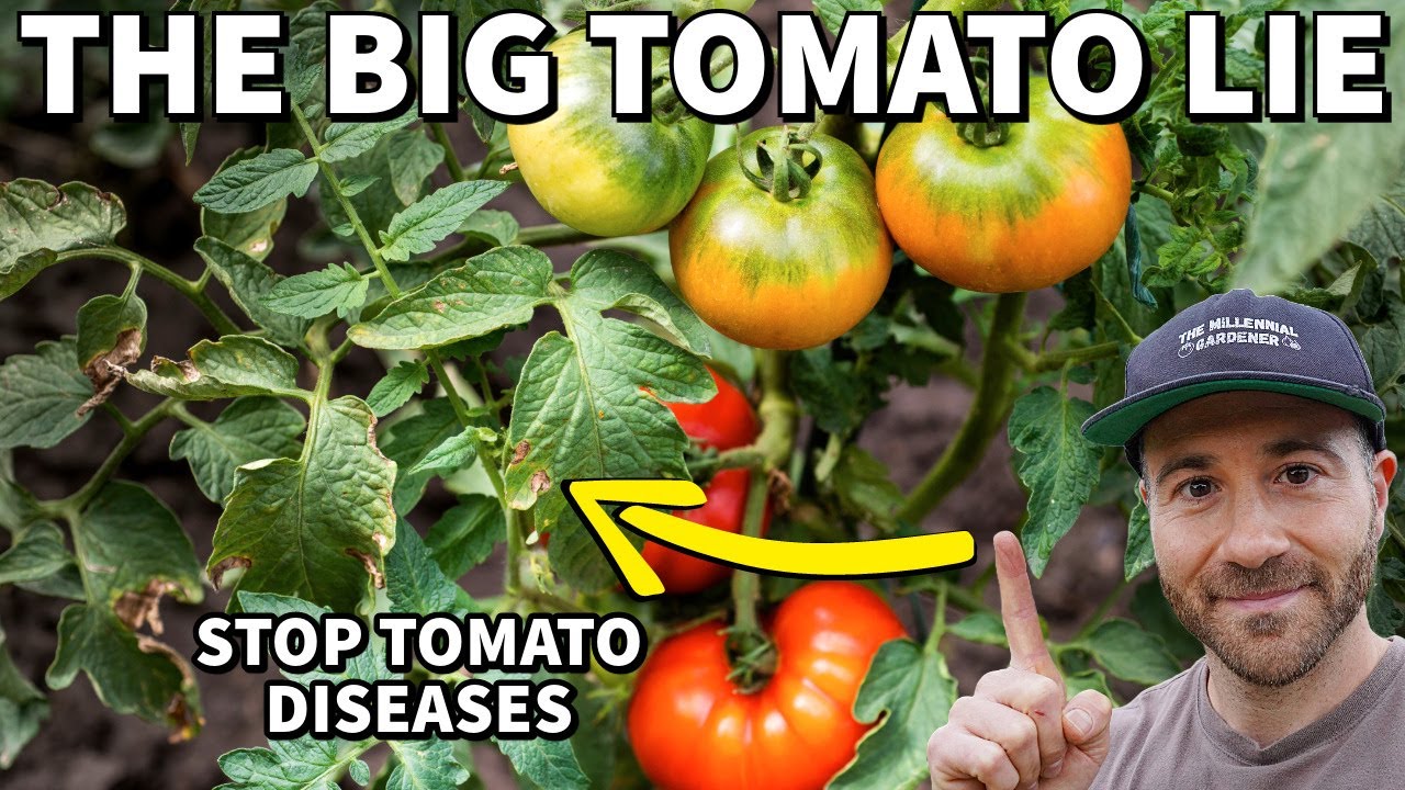 In this video, I explain the real reason why tomato plants get disease and pests and how to stop it! Most gardeners believe the best way to prevent tomato diseases and prevent insects on a tomato plant is to spray them with fungicides and pesticides, but if you’re spraying tomato plants, you’ve already lost the war. Don’t believe the big tomato lie! Do this instead!