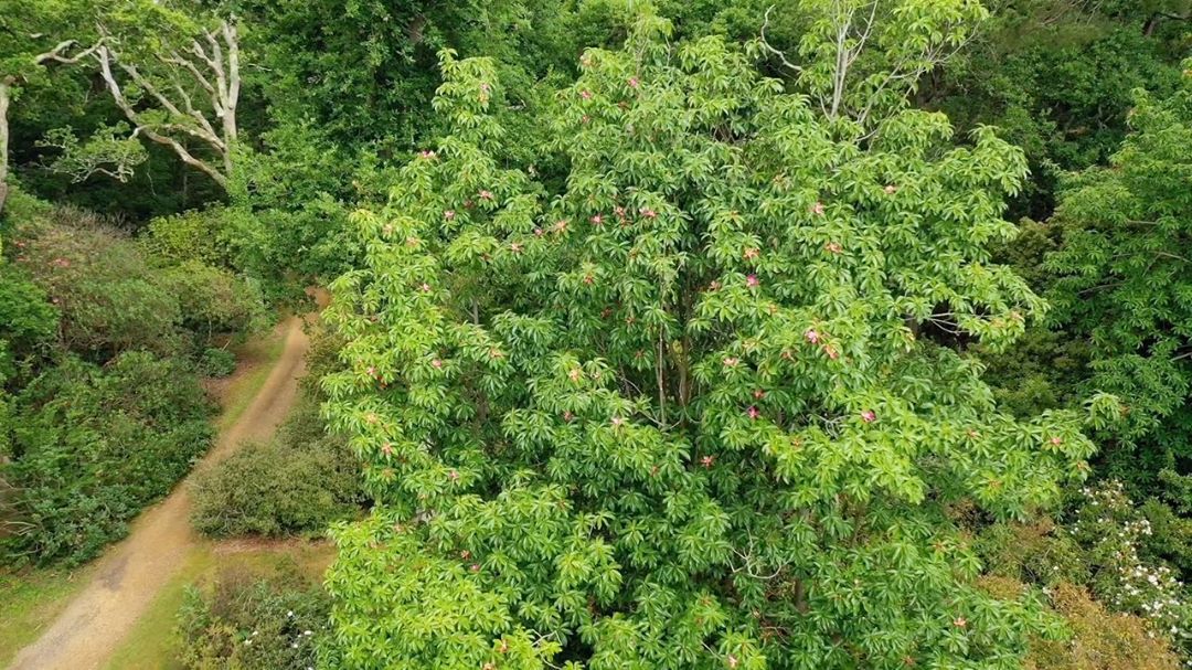 #Tuesday’s #tree of the #day : #Magnolia insignis : formerly Manglietia or commonly named – #red #lotus tree. This is a fabulously sized #specimen @exburygardens. A #rare #evergreen, it can lose its top leaves where it catches the prevailing south-westerly winds off the #river. The #flowers come in #waves throughout the early #summer – and boy what spectacular flowers they are!