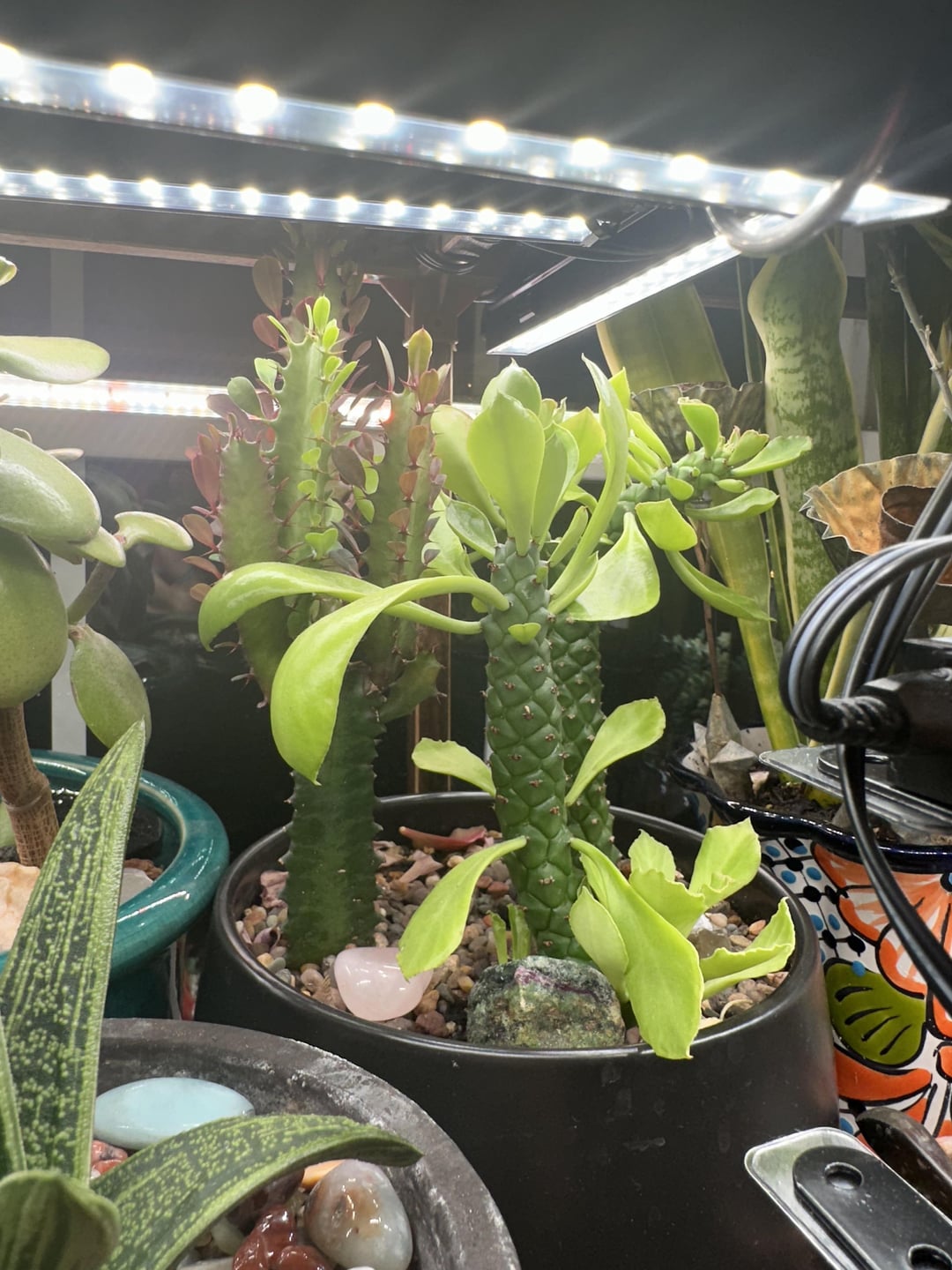 I got her last summer, and after some lighting struggles and a chop-n-prop she’s finally really taking off. She’s even putting out a couple of pups! I’d love to know what exactly she is so I can make sure she gets the kind of care she deserves