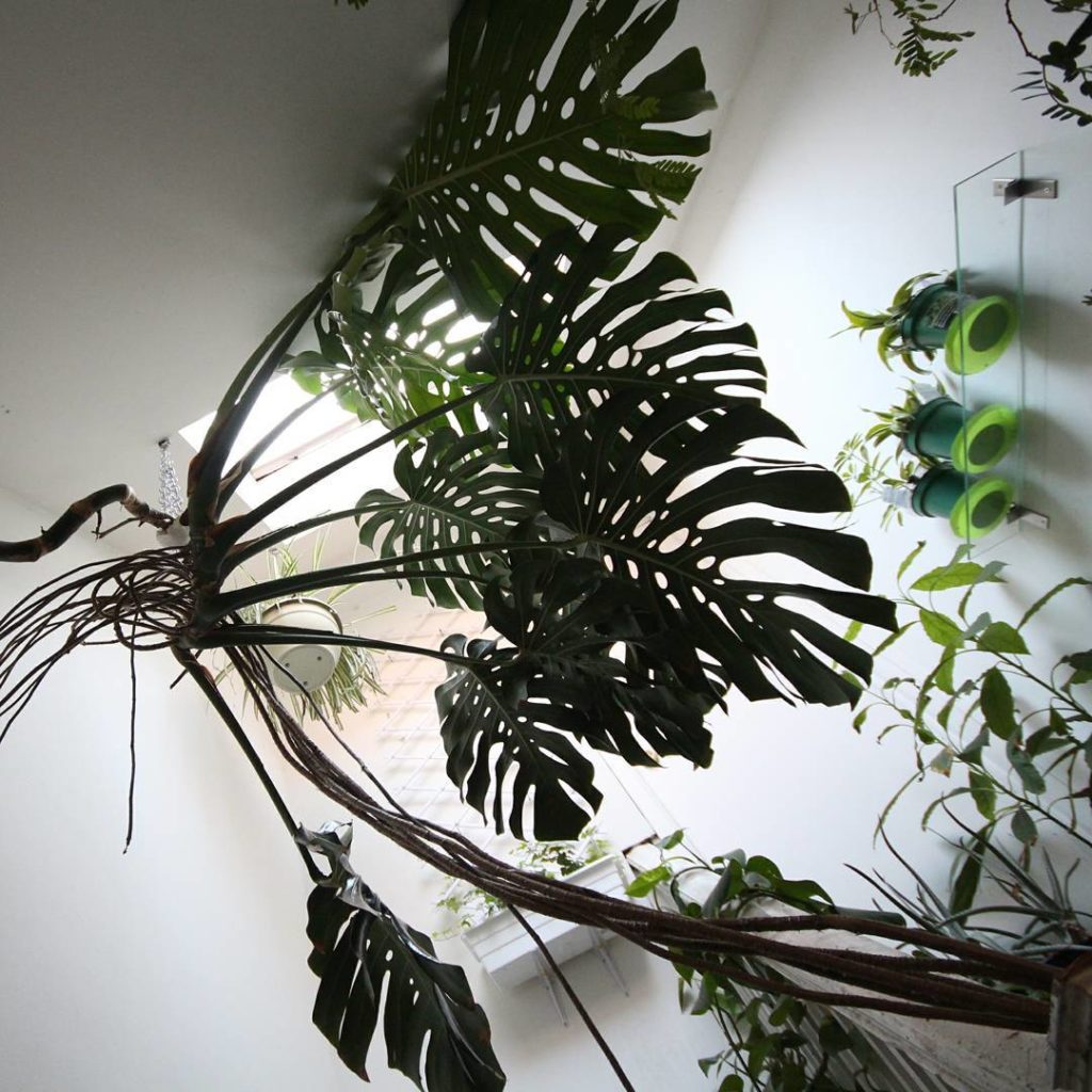 The view under this monstera is nothing short of magical! 📷 2: if you’re wondering, the main vine is suspended to the ceiling by a plastic chain and continues down to the pot, where there is another, shorter vine.